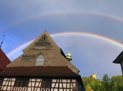 - Une chaire décorée par Locher et récemment restaurée, une crédence sculptée